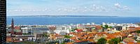 Panorama van Helsingborg (Zweden), Öresund en Helsingör (Denemarken).