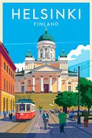 Helsinki ontvouwt zich in een kleurrijk spektakel van stedelijke lichtheid. Zachte trams glijden voor de majestueuze, glanzend witte kathedraal, terwijl voorbijgangers het stadsleven levendig maken. De harmonieuze combinatie van architectuur en sfeer nodigt je uit om de Scandinavische geheimen en charme van deze unieke stad te ontdekken.