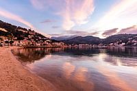 Laat je meevoeren door het adembenemende kleurenpalet dat de hemel boven Port de Sóller siert tijdens zonsondergang. Deze foto vangt een uniek moment waarop paars, roze en oranje samensmelten in een hemels kunstwerk dat elke kijker betovert. De pittoreske haven ligt vredig onder deze kleurexplosie met boten die zachtjes wiegen op het kalme water. De bergen van Serra de Tramuntana vormen een donker silhouet tegen deze levendige achtergrond en creëren zo een perfecte balans in compositie. Dit beeld is meer dan alleen een weergave van schoonheid; het vertelt ook verhalen over ontspanning en ontsnapping aan het dagelijks leven. Het roept beelden op van avonden vol gesprekken met vrienden of rustige momenten alleen met jezelf terwijl je geniet van deze natuurlijke wonderen. Hang deze foto op als een constante herinnering aan die magische momenten aan het water en laat het je inspireren om meer te ontdekken.