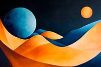Dompel jezelf onder in een dromerig landschap van zachte golven in warme okertinten die leiden naar een diepblauwe planeet en een stralend zonnelichaam. Deze harmonieuze combinatie van kleuren en vormen creëert een ontspannen sfeer, ideaal voor een moderne woonkamer of een inspirerende studeerkamer. Een blikvanger die uitnodigt om te dromen!