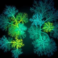 Duik in de betoverende diepten van 'Celestial Convergence,' een kunstwerk dat het kruispunt van organische groei en stralende energie verkent. Lichtgevende, boomachtige structuren vertakken en verstrengelen zich, pulserend met levendige tinten turquoise en goud tegen een diepe, raadselachtige achtergrond. Dit werk nodigt je…