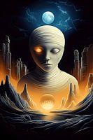 Een tijdloos wezen duikt op uit de kosmische afgrond en belichaamt zowel verdriet als wijsheid. Met een enkel gloeiend oog van vurig inzicht en een traan die door de eeuwigheid snijdt, waakt deze bewaker over een verlaten wereld waar oude beschavingen ooit floreerden. Boven knettert de maan van hemelse energie, terwijl beneden een…