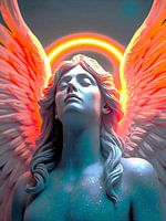 Haar etherische vleugels gloeien met goddelijke energie, terwijl een zachte stralenkrans haar vloeiende, kastanjebruine haar bekroont - een symbool van zuiverheid en transcendentie. Bloemenaccenten benadrukken haar natuurlijke gratie en haar iriserende gewaad geeft elegantie en mystiek.