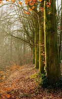 Portret bij het park van Hemmen, op de Overbetuwe in Gelderland, met zicht op een rij bomen die baden in het gouden licht van de opkomende zon.