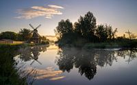 Zonsopgang bij de Hengstforder Mühle, Ammerland in Nedersaksen, Duitsland