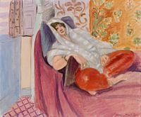 Henri Matisse, Woman Reclining (1921) Henri Émile Benoît Matisse was een Frans beeldend kunstenaar, bekend om zowel zijn kleurgebruik als zijn vloeiende en originele tekenkunst. Hij was tekenaar, prentkunstenaar en beeldhouwer, maar is vooral bekend als schilder.