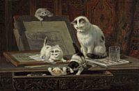 Henriëtte Ronner-Knip (1821-1909) was een Nederlandse schilderes die het meest bekend is om haar realistische afbeeldingen van dieren, vooral katten. Ze groeide op in een artistieke familie en was de dochter van de schilder Jozef Ronner. Haar werken worden gekenmerkt door gedetailleerde afbeeldingen van dieren en scènes uit het dagelijks leven, vaak in een intieme, huiselijke omgeving. Naast haar dierenschilderijen schilderde ze ook portretten en landschappen. Ronner-Knip kreeg erkenning in Nederland en daarbuiten en was een van de weinige vrouwelijke kunstenaars van haar tijd die een succesvolle carrière in de academische schilderkunst nastreefde.