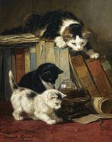Henriëtte Ronner-Knip (1821-1909) was een Nederlandse schilderes die het meest bekend is om haar realistische afbeeldingen van dieren, vooral katten. Ze groeide op in een artistieke familie en was de dochter van de schilder Jozef Ronner. Haar werken worden gekenmerkt door gedetailleerde afbeeldingen van dieren en scènes uit het dagelijks leven, vaak in een intieme, huiselijke omgeving. Naast haar dierenschilderijen schilderde ze ook portretten en landschappen. Ronner-Knip kreeg erkenning in Nederland en daarbuiten en was een van de weinige vrouwelijke kunstenaars van haar tijd die een succesvolle carrière in de academische schilderkunst nastreefde.