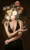 Een surrealistisch, romantisch, sensueel en herfstachtig portret van een vrouw.