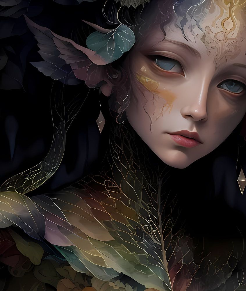 AI generiertes Werk. Eine faszinierende Elfe die ihre Verbundenheit zur Natur zeigt.