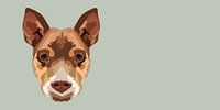 Portret van een puppy van een herdershond met zachtgroene achtergrond. Kijkt je recht aan
