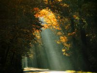 Koop dit landschapskunstwerk Here Comes the Sun (Zonnestralen in het bos) van Kees van Dongen op canvas, aluminium dibond, (ingelijste) fotoprint, behang en ArtFrame, op maat geprint in Fine-Art kwaliteit.