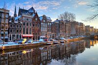 Prachtige opname van de Herengracht in Amsterdam tijdens zonsopkomst in de winter