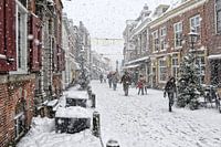 Herenstraat Voorburg in de sneeuw, geeft een soort van Anton Pieck sfeer weer.