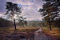 Zonsopkomst op een herfstdag op de Zuid-Limburgse Brunssummerheide. De kleuren worden versterkt door het gebruik van een landschap polarisatiefilter.