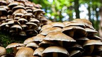 De herfst is begonnen met een mooie groep groeiende paddenstoelen in het bos.