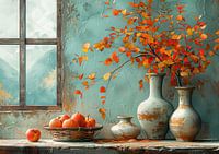 Herfst Stilleven Modern | Gentle Breeze of October Days - Modern stilleven met herfstbladeren en vruchten