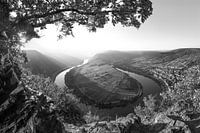 Bij Bremm in de regio Calmont maakt de rivier een bocht van bijna 180°, die bijzonder mooi te zien is vanaf de hoger gelegen wijngaarden. In de herfst is het licht bij zonsopgang in combinatie met de ochtendmist bijzonder zacht en laat het de gouden herfstbladeren bijzonder mooi tegen het licht schijnen. Landschap Zwart Wit 90320249ays