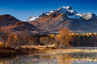 Een herfstochtend aan de Silser See in Graubünden, Zwitserland.