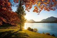 Herfstbladeren aan het Sylvenstein stuwmeer in de Isarwinkel