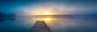 Voetbrug bij het meer bij zonsopgang met mist - Panorama