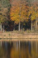 Erg kleurrijke foto met de fantastische herfstkleuren in de bomen en struiken. Ze reflecteren hier erg mooi op het vlakke rustige water van de ven waardoor er een mooie abstracte reflectie ontstaat. De weerspiegeling heeft hierdoor iets impressionistisch.