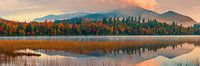 Panoramafoto van herfstkleuren en zonsopkomst bij Connery Pond, gelegen in North Elba, nabij Lake Placid in het noorden van de staat New York, Verenigde Staten. Het is de thuisbasis van een van de meest iconische uitzichten in het Adirondackgebergte.