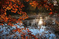 Avondsfeer bij Thanninger Weiher, glanzende herfstige beukentakken