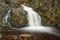 Deze opname van de Bayehon waterval in de Belgische Ardennen legt de magie van de herfst perfect vast. Door de lange belichting ziet het water er fluweelzacht uit, vooral waar het aan de voet van de waterval uitmondt. Omgeven door ruige, kale rotsen, schaars begroeid met grassen en kleine naaldbomen, straalt het landschap een rustige, ongerepte natuur uit. Op de achtergrond zetten de eerste rode bladeren van de herfstbomen kleurrijke accenten. Deze herfstachtige achtergrond combineert de krachtige dynamiek van water met de rustige schoonheid van de natuur. De foto is ideaal als wanddecoratie om in elke kamer een ontspannen en harmonieuze sfeer te creëren. Perfect voor natuurliefhebbers en mensen die de rust en magie van de herfst in huis willen halen.