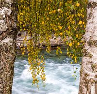 Gekleurde herfstbladeren van berkenbomen in Rondane, Noorwegen.