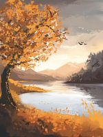Koop dit landschapskunstwerk Herfst boom aan de rand van een bergmeer van Emiel de Lange op canvas, aluminium dibond, (ingelijste) fotoprint, behang en ArtFrame, op maat geprint in Fine-Art kwaliteit.