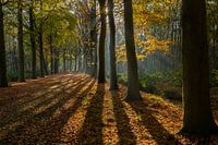 In het bos van landgoed de Horsten in Wassenaar deze opname gemaakt op het moment dat de herfst qua kleuring op zijn hoogtepunt was en de ochtend zon tussen de bomen scheen met nog een klein beetje nevel.