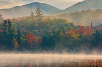 Connery Pond in North Elba, dicht bij Lake Placid, de staat New York, is de thuisbasis van een van de meest iconische uitzichten in de Adirondacks.