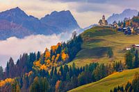 Herfst en herfstkleuren in Colle Santa Lucia, een dorp en gemeente in de Italiaanse provincie Belluno, in de regio Veneto. Het schilderachtig dorpje ligt ten zuidwesten van Selva di Cadore, dat in Trentino-Zuid-Tirol ligt.