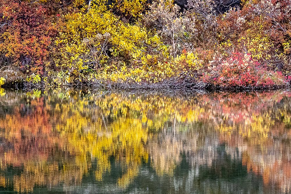 Reflectie in Myvatn (muggenmeer) herfsttijd Ijsland.