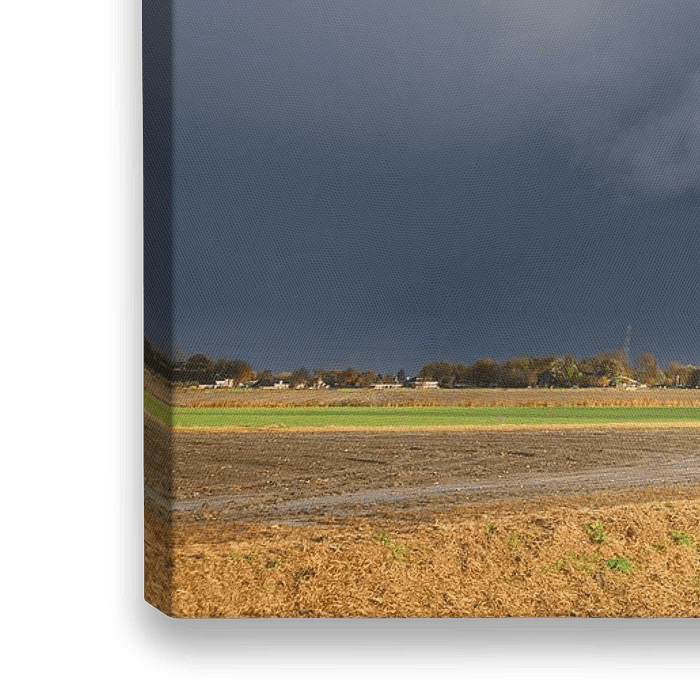 Herfstkleuren en dreigende luchten boven het landschap bij het dorpje Eenum in het noorden van de provincie Groningen. Het is een typisch beeld van het Groningerlandschap. Deze foto is gepubliceerd in het boek Ruim Leven.