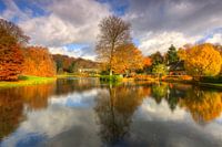 Prachtige herfstkleuren in Park Rosendael en mooie weerspiegeling in de vijver rondom Kasteel Rozendaal, Arnhem, Nederland