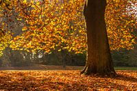 Een boom in het euromastpark met tegenlicht gefotografeerd in volle herfstkleuren.