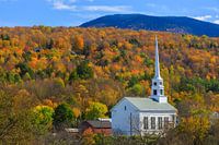 De Stowe Community Church ligt in het hart van Stowe, een klassiek dorp in New England in de Green Mountains van centraal Vermont, in het oosten van de Verenigde Staten.