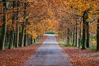 Een kleurrijke laan van bomen in de herfst.