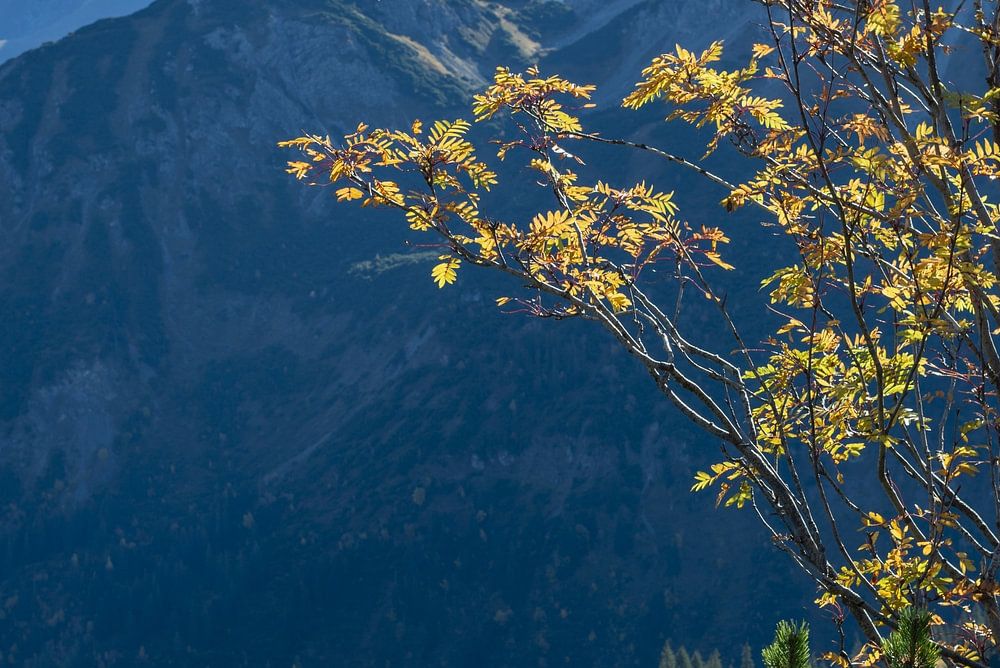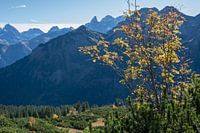In het hart van de Allgäu ontvouwt de herfst zich in een adembenemend kleurenpalet. Op 2037 meter hoogte, vanaf de Fellhorn, strekt zich een majestueus bergpanorama uit dat de ziel raakt. De imposante Hornbachketen strekt zich voor je ogen uit, met de Großer Krottenkopf die met 2656 meter fier boven je uittorent. De Kratzer, niet minder indrukwekkend, torent 2427 meter de diepblauwe hemel in. De Trettachspitze, met zijn ruige kenmerken, en de opvallende Mädelegabel, die 2645 meter hoog is, maken dit onvergetelijke panorama van de centrale hoofdkam van de Allgäuer Alpen compleet.