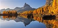 Herfst bij Lago Federa en Croda da Lago in de Dolomieten.