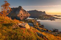 Je kijkt uit over Hamnoy en Reine. Twee vissers dorpjes in de Lofoten