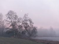 Herfstsfeer in de heideweide na zonsondergang.