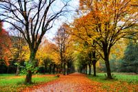 Prachtige opname van een laan in het Amsterdamse bos in de herfst met fantastische herfstkleuren