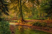 Herfst en zonsopkomst in het Slochterbos. Het bos maakt deel uit van de Fraeylemaborg in Slochteren, in de provincie Groningen, Nederland.