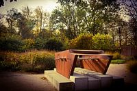 Het mooie Toorenvliedtpark met een prachtig kunstwerk bij de ingang