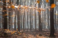 Een nevelige ochtend in het herfstige beukenbos