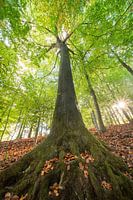 Mooie bomen in het Bos van Brakel in Oost-Vlaanderen tijdens de herfst met zonnestralen.