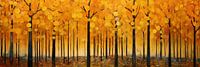 Een kleurrijk digitaal schilderij een gouden bos in de herfst met oranje bladeren. Het werk geeft een warme en klassieke uitstraling van uw interieur!
